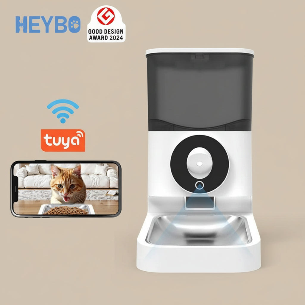 Feed smarter and stay connected anytime with the HEYBO Automatic Pet Feeder with Camera. This Wi‑Fi enabled feeder pairs with the Tuya app so you can monitor, call, and feed your pet remotely—even record your own voice messages. With 1080P HD recording, infrared night vision, motion detection, two-way audio, and a reliable feeding system designed to keep kibble fresh, it’s a powerful upgrade for daily peace of mind.